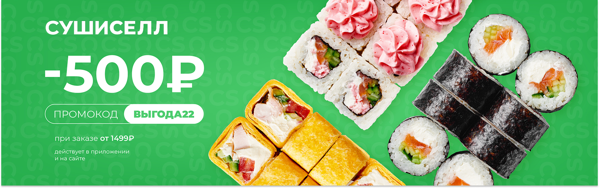 Полные условия: акция не суммируется с другими акциями и скидками, не распространяется на самовывоз, промокодом ВЫГОДА22 можно воспользоваться только, если сумма заказа больше 1499 рублей (до использования промокода).