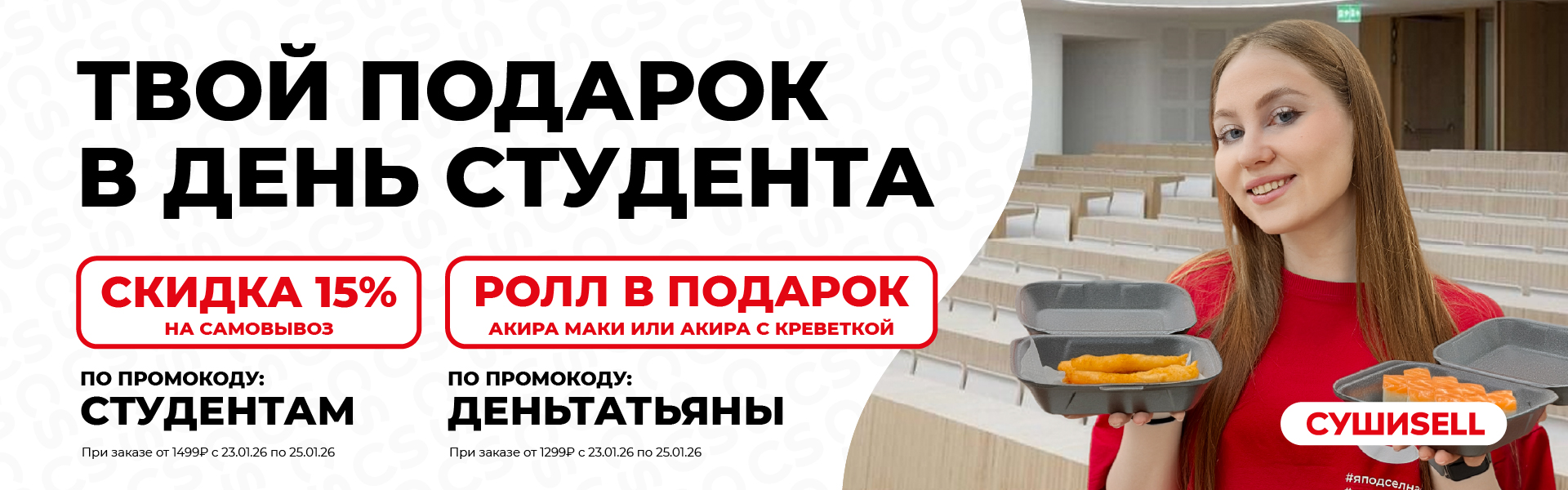Отмечаем 25 января вместе! Специально к празднику мы подготовили эксклюзивные промокоды для студентов и всех, кто любит вкусно поесть. Не важно, грызете ли вы сейчас гранит науки или уже получили диплом — наши акции ко дню студента сделают ваш вечер ярче.