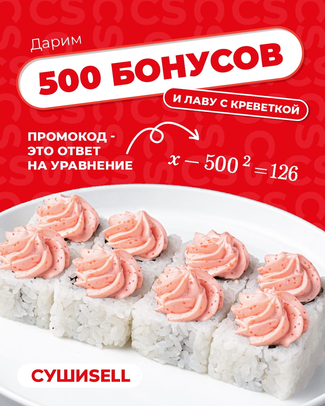 3. Секретная акция для отличников. Решите простое уравнение, и полученный ответ станет вашим ключом к супер-призу: 500 бонусов + ролл Лава с креветкой в подарок (на заказ от 1499 р.).
