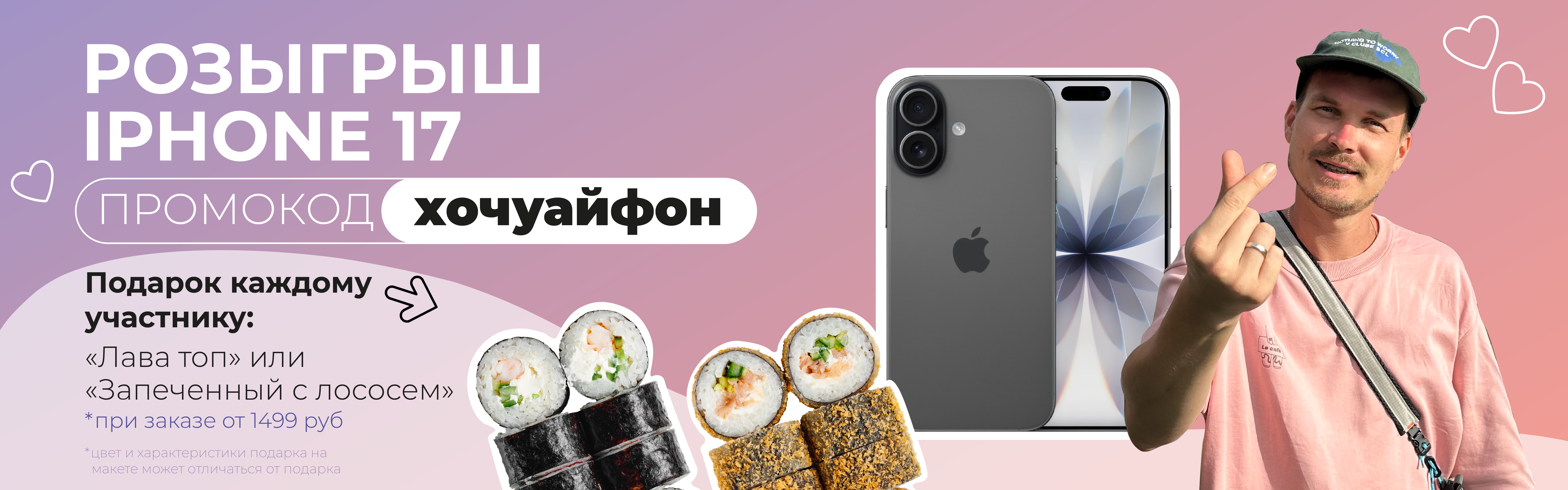 Кстати, каждый заказ с промокодом — это дополнительный шанс на победу. Чем больше заказов, тем выше вероятность выиграть технику 😉