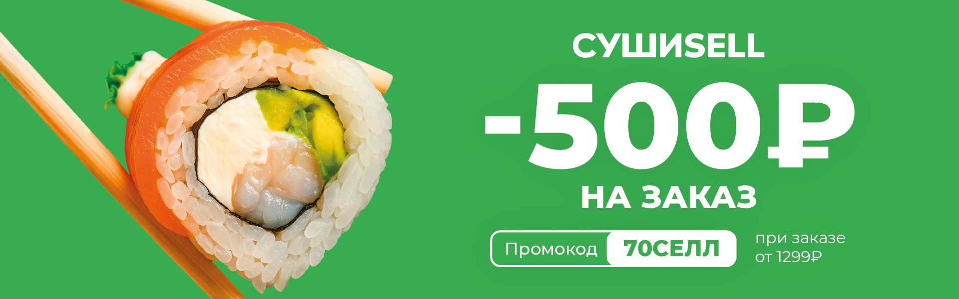 Полные условия: акция не суммируется с другими акциями и скидками, не распространяется на самовывоз, промокодом 70СЕЛЛ можно воспользоваться только, если сумма заказа больше 1299 рублей (до использования промокода).