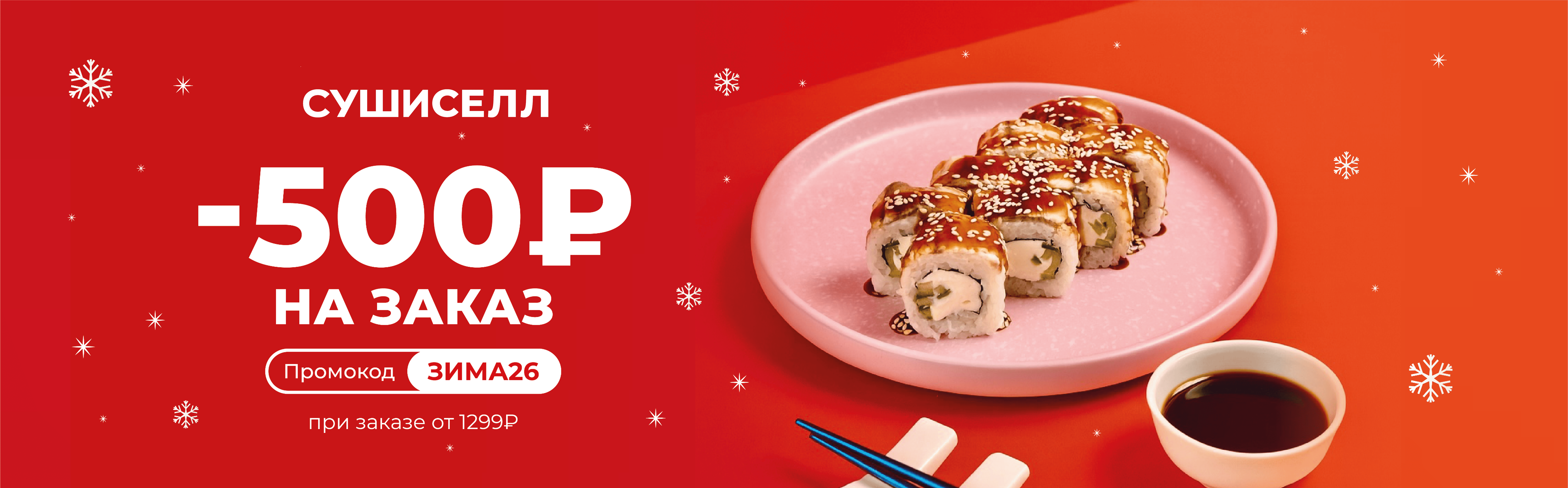 Полные условия: акция не суммируется с другими акциями и скидками, не распространяется на самовывоз, промокодом ЗИМА26 можно воспользоваться только, если сумма заказа больше 1299 рублей (до использования промокода).