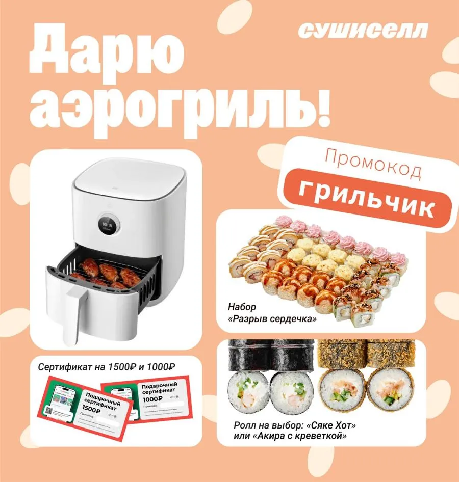 9430 СушиSELL new Лосось, краб, огурец, угорь, соус унаги, соус цезарь, рисовые шарики